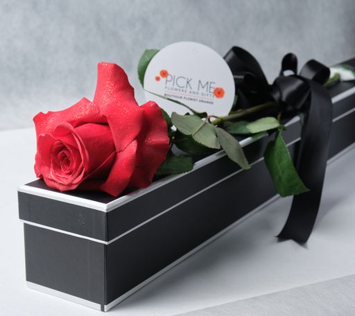 Treat someone special to a single long stemmed red rose. Our florists will present this beautifully with our deluxe rose boxes to give that WOW factor.